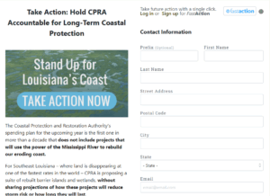 We need a bold, long-term vision to ensure the area that received the most oil will receive the full benefits of the Deepwater Horizon restoration dollars. - Lacks transparency. CPRA could improve trust by sharing projections of how these new proposals will affect storm risk, increasing transparency around how projects are selected, sharing previous year budget-to-actuals, and continuously sharing estimated timelines for all projects.